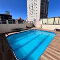 Lazer na cobertura com piscina, salão de jogos, salão de festas com espaço gourmet.